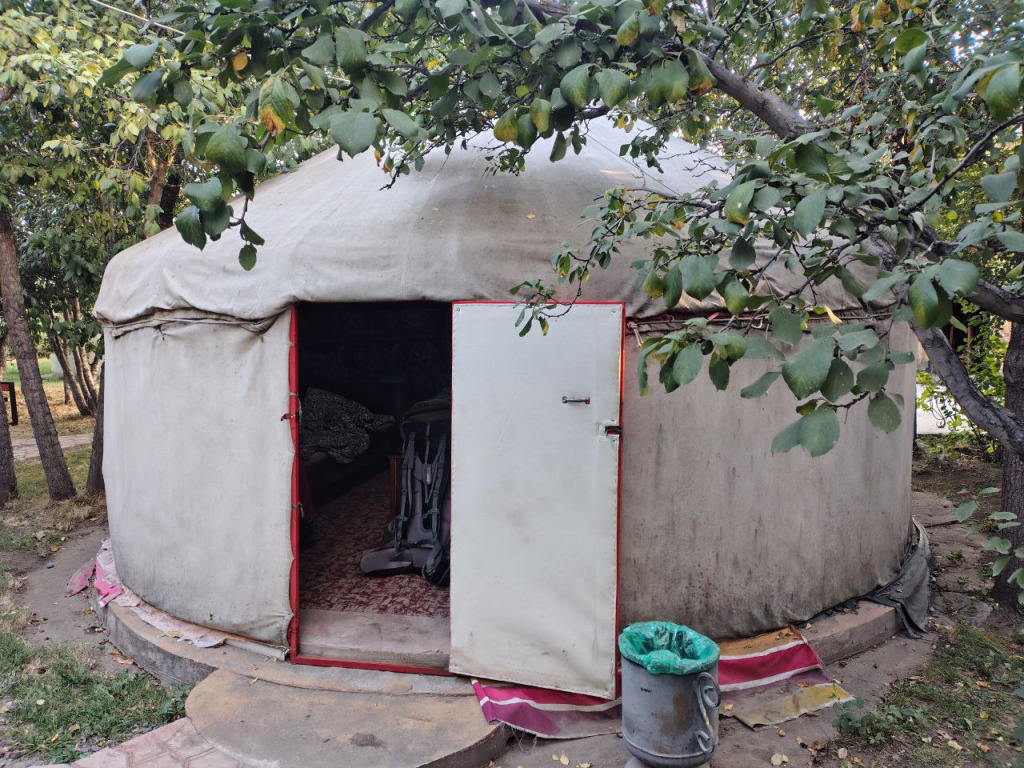 По сути: обычный гостевой дом, только юрта. Стоят 4 кровати, удобства рядом. Из годного: сочная и сладка груша прямо над нами. Набрали немного с собой в дорогу. А ещё суровая книга почёта (и уважения):