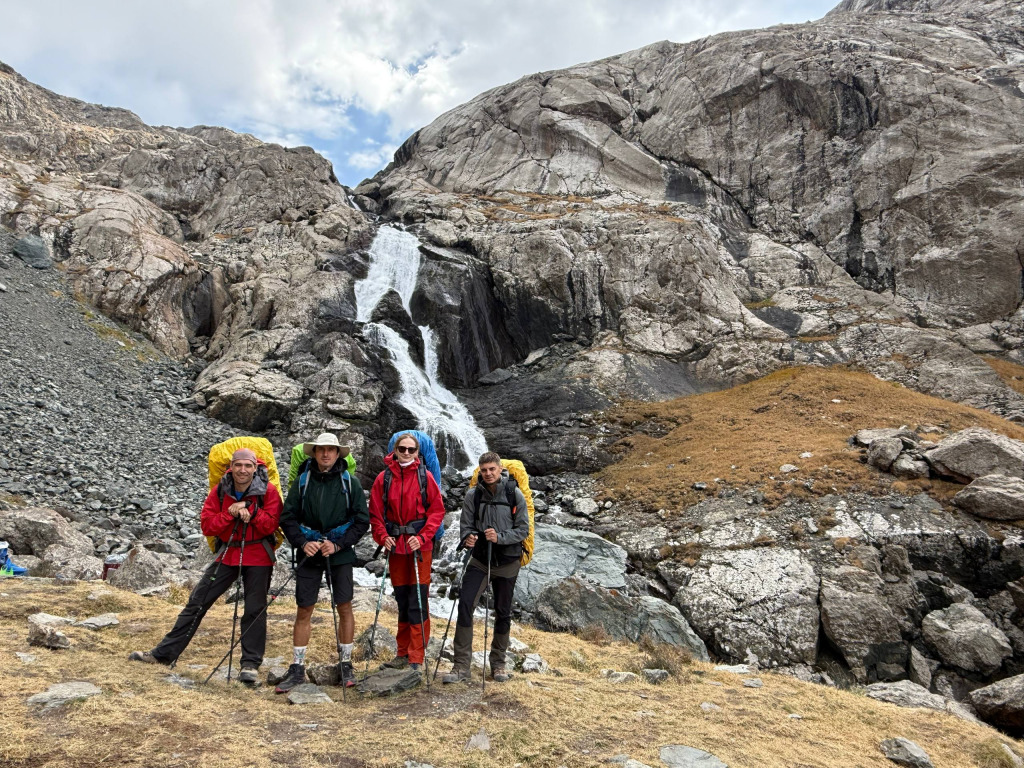 На скалах есть места под палатки, с выложенными стенками. Но решаем, что слишком далеко от воды и хочется поближе к озеру. Ещё немного набора высоты, для обхода прижимов, совет от местного гида, что лучше становиться дальше, пропуск ещё одного стояночного места и к трём часам мы на месте нашей следующей стоянки.