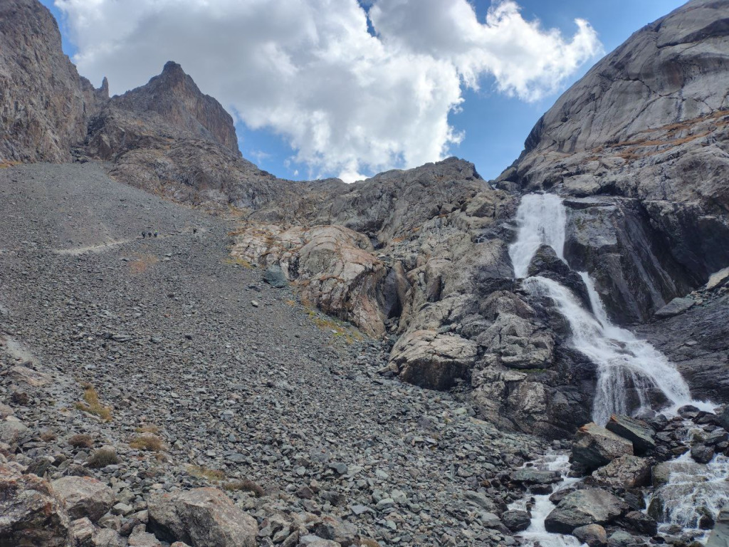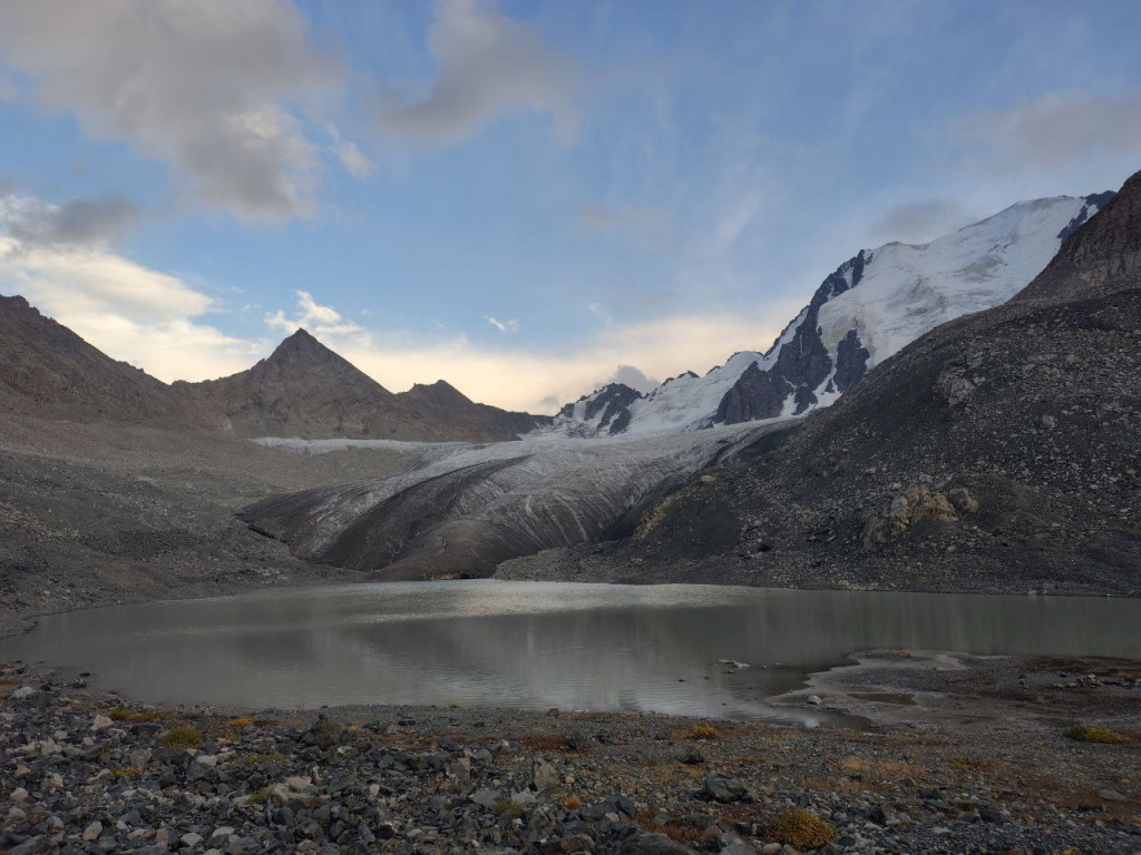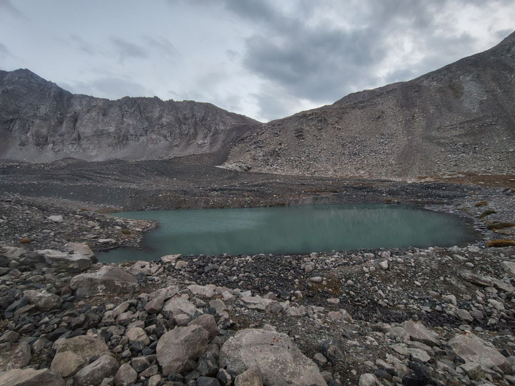 Разбиваем лагерь, обедаем и около пяти часов вечера решаем, что стоит сходить в радиалку до ледника и малых озёр, к “истоку” Ала-Кёль. Запасаемся штормовой одеждой (пытается греметь гром), водой и фонариками и в путь. Вова остаётся в лагере: кружится голова. Списываем на проявление горняшки.