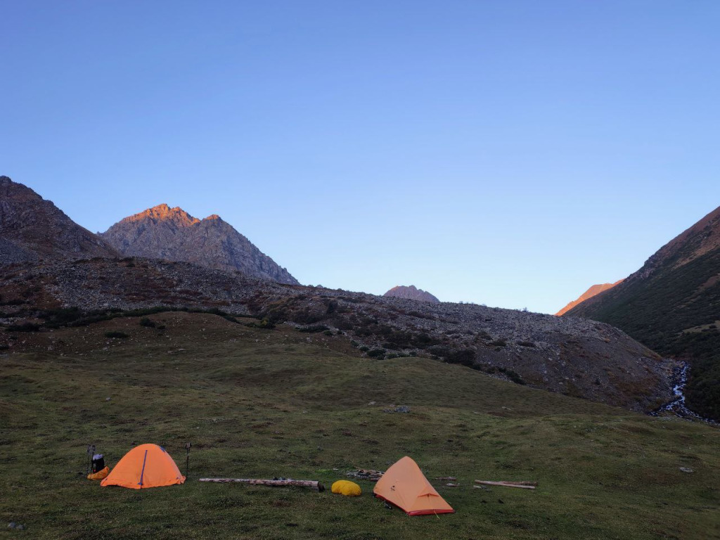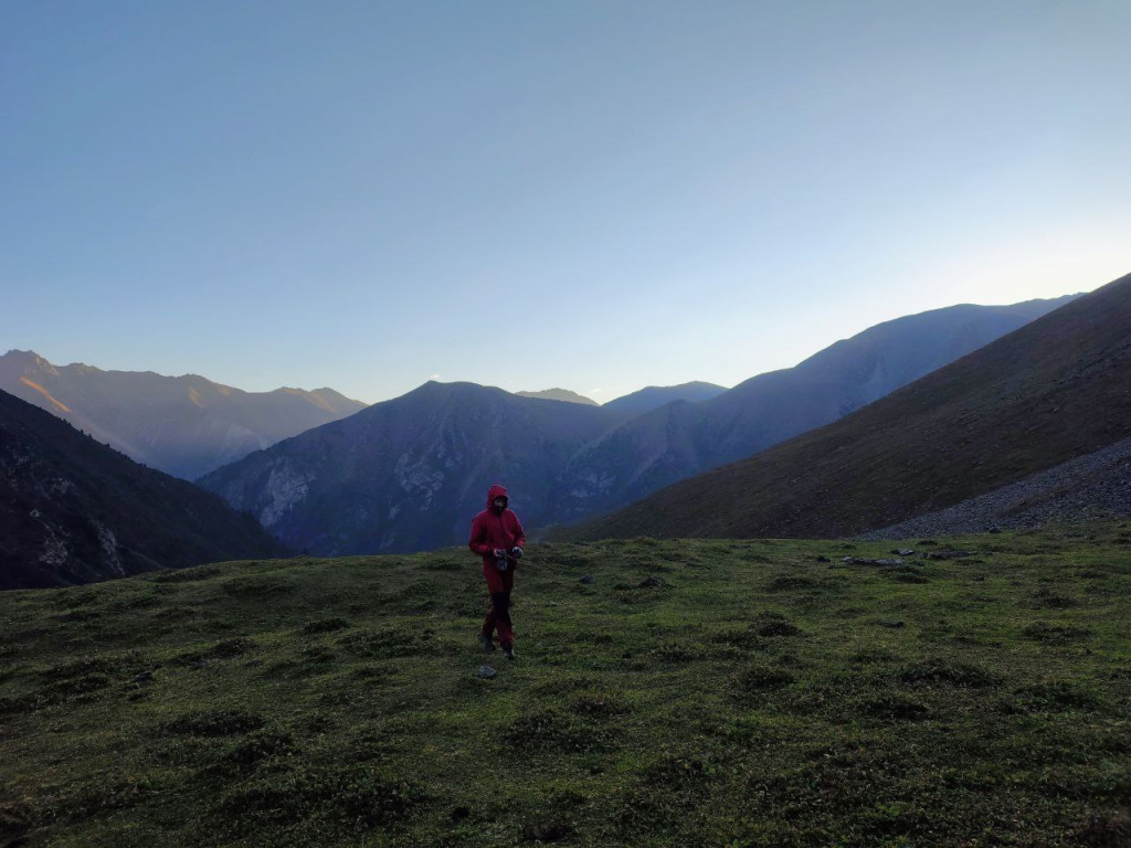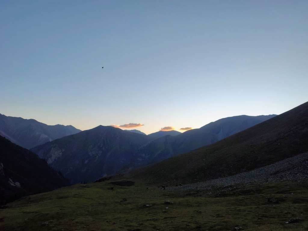 По ночи замечаем мелькание фонарей со стороны перевала: кто-то спускается. Часто останавливаются, с Дашей обсуждаем, что вдруг что не так, стоит хотя бы кипятка сделать, чаем обогреть. Выдвигаюсь на встречу. Оказалось - два американских туриста. По методу “мальчик на пальцах объяснил, что его зовут Хуан”, выясняю, что у них всё ок, просто так получилось. Но предлагаю, что бы не искать места по ночи под лагерь ставится рядом с нами: есть удобное место. Соглашаются. Выясняем, что это уже седьмой день их пути и сегодняшняя ночёвка будет последней, после чего выходят в Джеты-Огуз и завершают трекинг. За сим отправляемся спать.