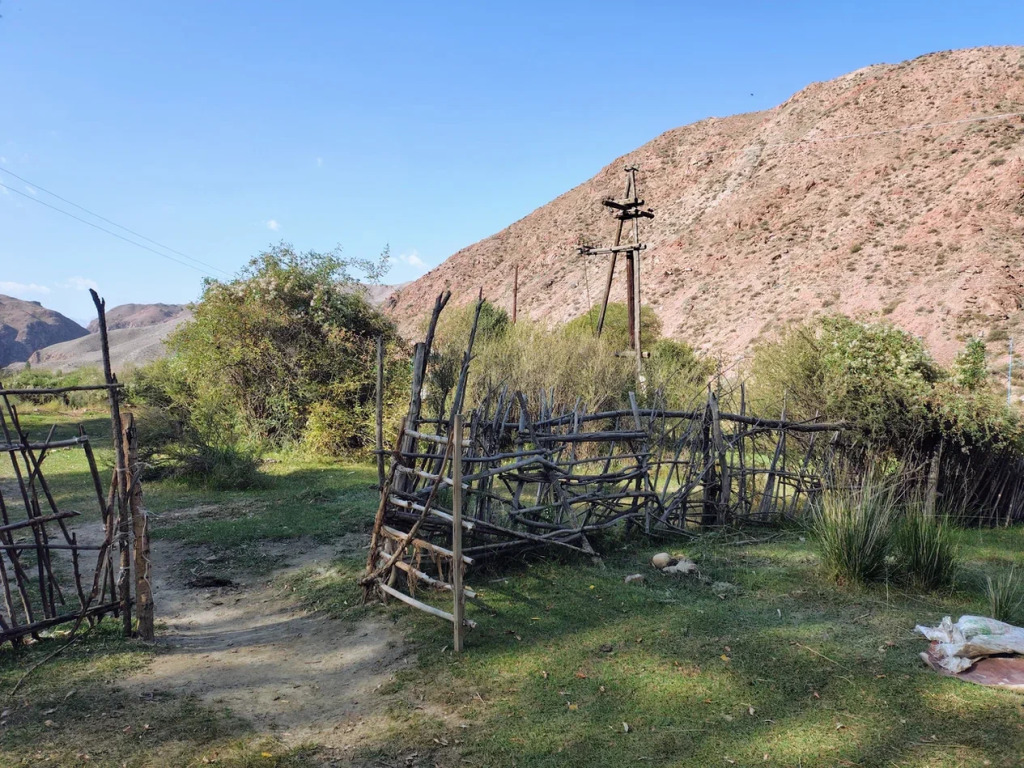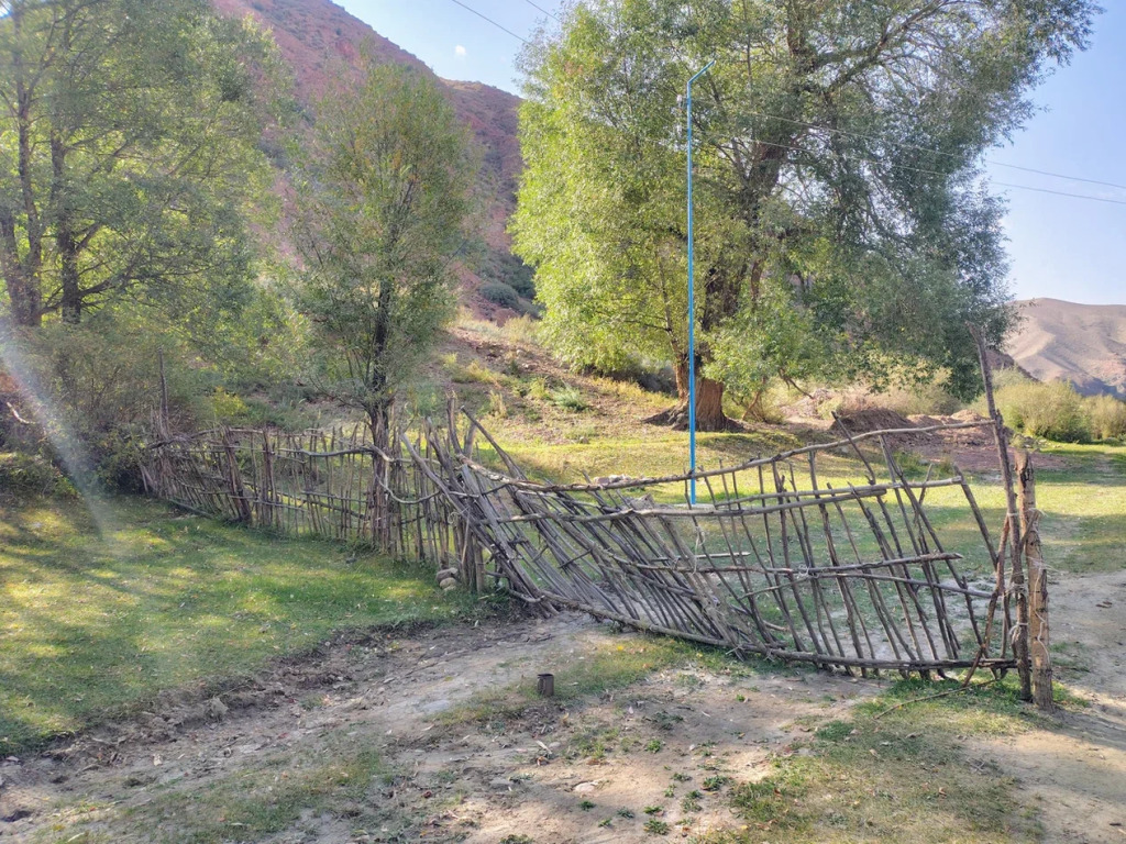 По пути прикидываем, куда бы ещё заехать, решаем поискать горячие источники в окрестностях. Определяем пару точек и останавливаемся на обед в районе Кашка-Суу: какой-то кемпинг/база отдыха с беседками. Явно уже в состоянии “давненько тут никого не было”. На дурачка планировалось воспользоваться навесом под которым приготовить и поесть. Но подошёл или охранник или хозяин. Пришлось сторговаться на на 200 сом, что бы часик поэксплуатировать видавший виды навес. Мужичок поворчал, что все прижимистые стали, но деньгу взял и нас пустил.
