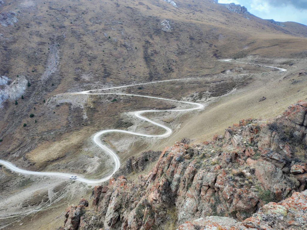 Изначально в планах было заезжать сюда через перевал Терскей-Торпок, он же, в народе, “33 попугая”, вроде как по числу поворотов на нём. Хотя я пересчитвал по карте, насчитал 29. Потом 28. Решил, что термин “поворот” может быть очень растяжимым понятием. В общем, раз навигатор привёл не через него, то решаем посмотреть на попугаев хотя бы сверху: