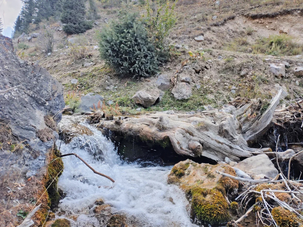 В конце спуска с перевала (или в начале подъёма, как смотреть) есть ручей с чистой водой. Останавливаемся, пополняем дежурные запасы воды.
